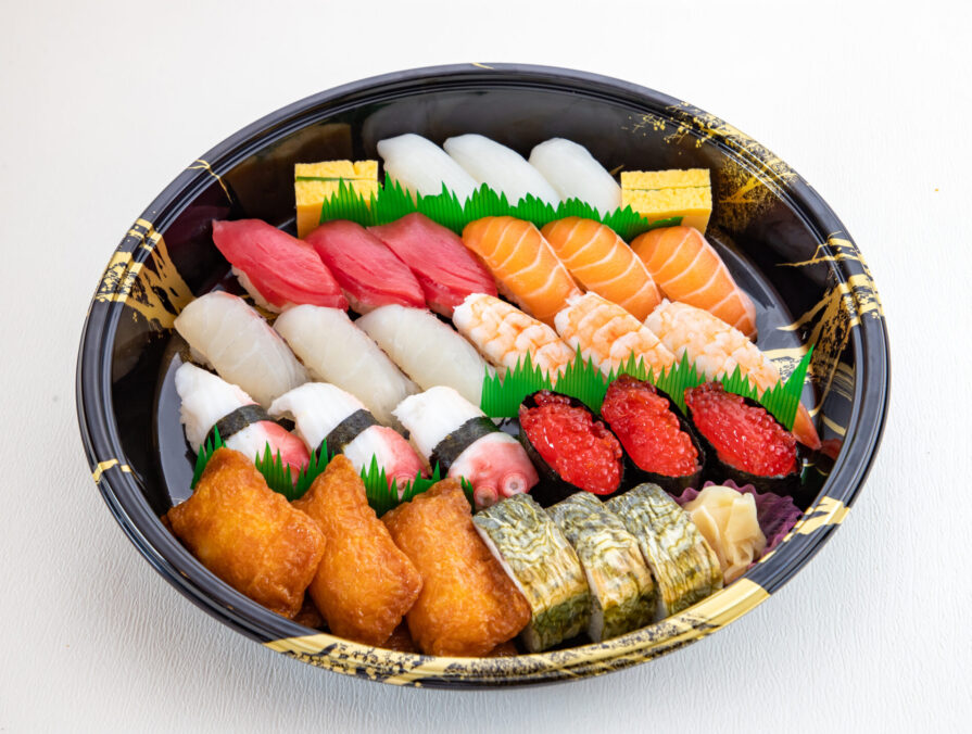 内容:いか・本鮪赤身・サーモン・真鯛・蒸し海老・真たこ・すじこ・いなり・鯖棒寿司