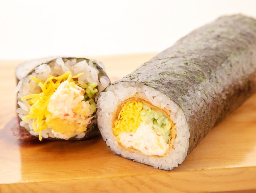 カニサラダ・いなり・錦糸卵・きゅうりの入った定番の恵方巻き! どんな方にも愛される味わいです! ※テイクアウト割引適用外