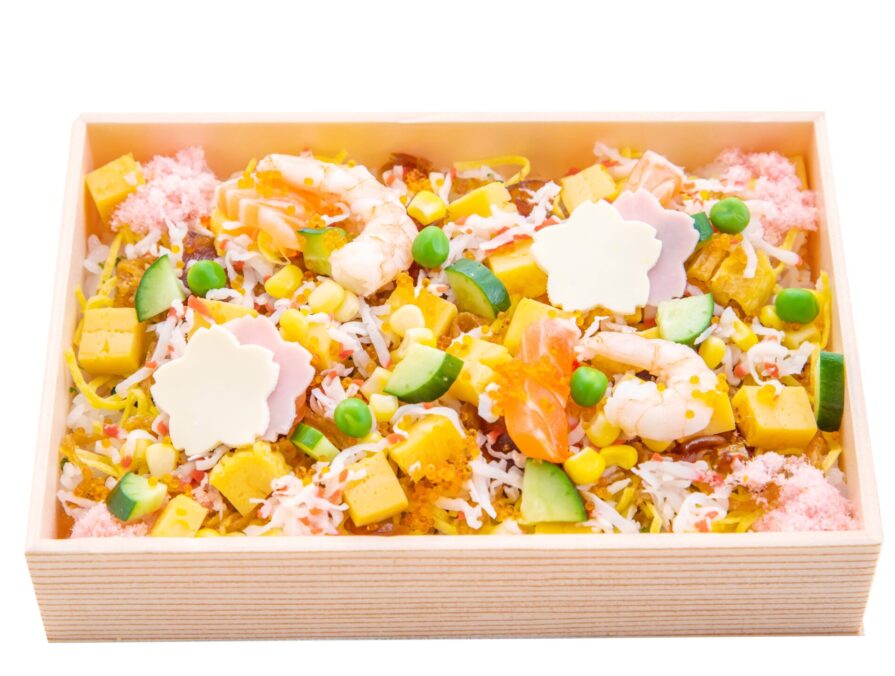 サーモン、海老、かにかま、コーン、ハム、チーズ、玉子焼き、塩豆、かんぴょう、いなり、きゅうり、おぼろ、とびっこ、ごま、青のり