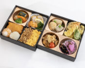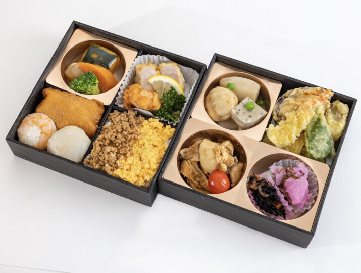 そぼろご飯・稲荷寿司・手毬ずしを彩りよく詰めた、華やかな二段御膳。