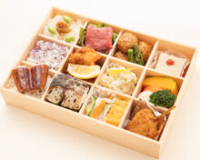 重役会議や特別なおもてなしに最適!鰆の西京焼きとあんこう唐揚げとローストビーフ、そして鰻ごはん。和乃花厳選した食材を使った特選12枡の幕の内タイプの仕出し弁当です。