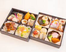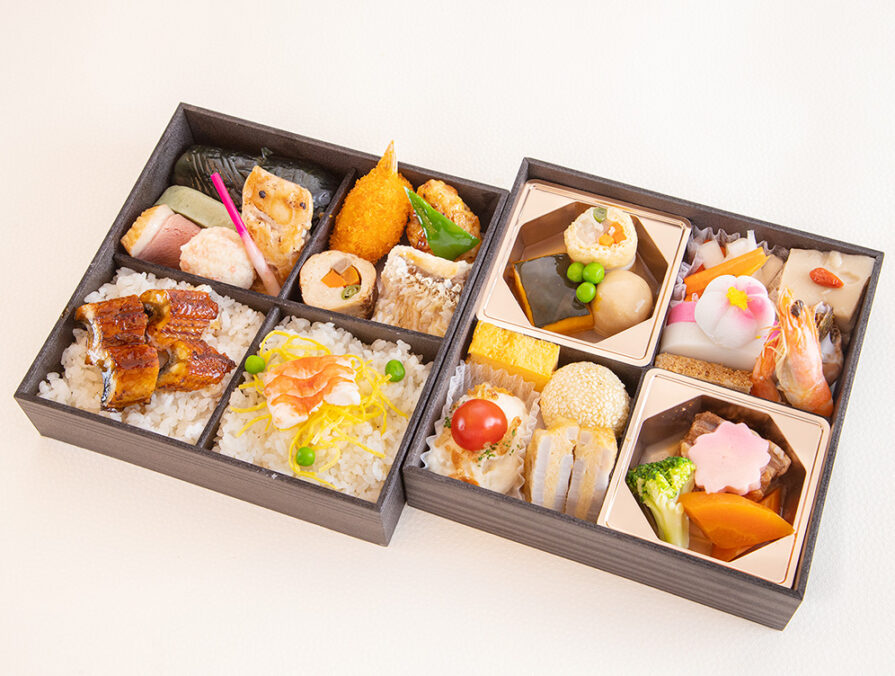 魚・肉・野菜料理、煮物・焼き物・揚げ物を盛り込んだ贅沢二段御膳な仕出し弁当です。大切なお集まりにご利用ください。