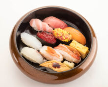 本鮪の大トロ・中トロ・ずわい蟹・穴子の贅沢なお寿司を盛込みました。 ご配達時には使い捨て容器にてご用意いたします。