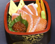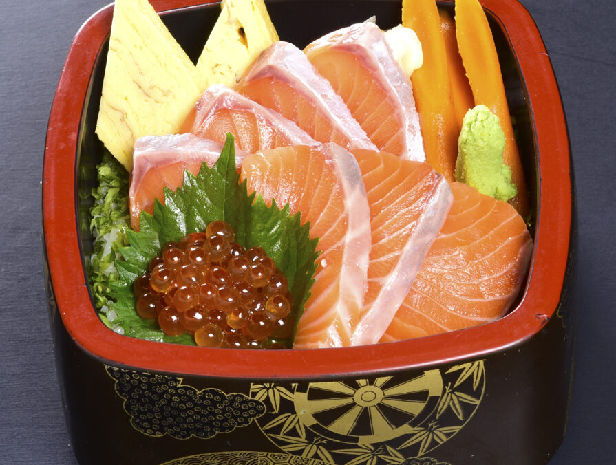 脂が乗ったサーモンに濃厚ないくらは、大人からお子様までご満足いただけるちらし寿司です。 ご配達時には使い捨て容器にてご用意いたします。