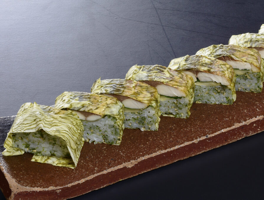 鯖の旨さを胡麻と青のりが引き立てます。 ご配達時には使い捨て容器にてご用意いたします。