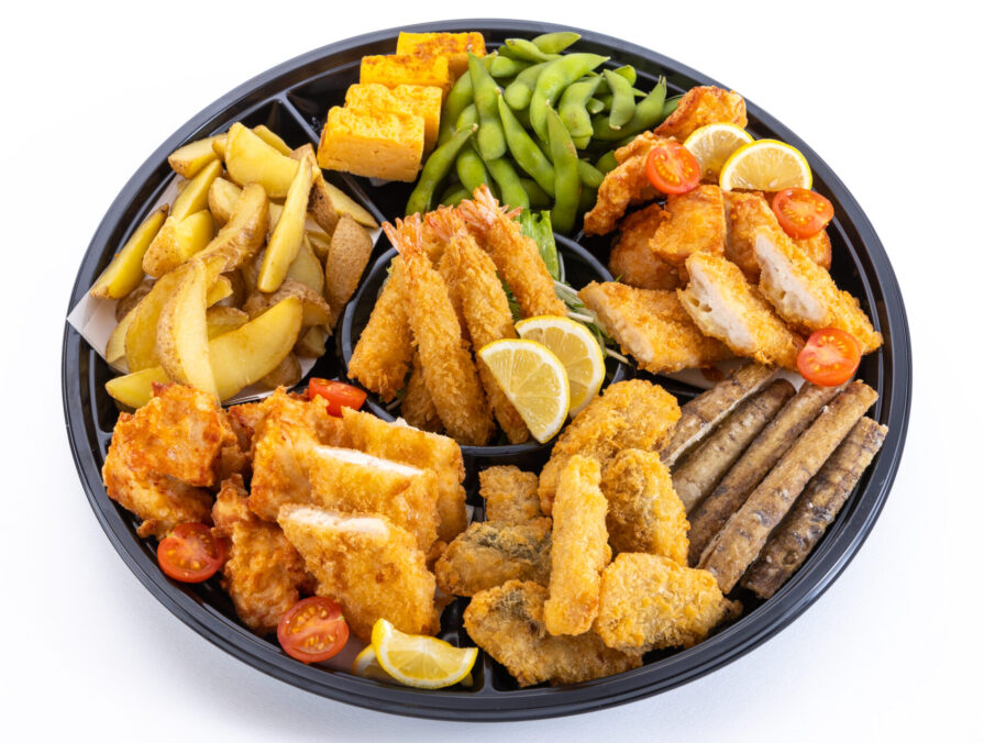 老若男女に大人気の揚げ物オードブルです。海老フライや唐揚げ、チキンカツに旬魚の唐揚げなど、様々な人気唐揚げを盛り込みました。