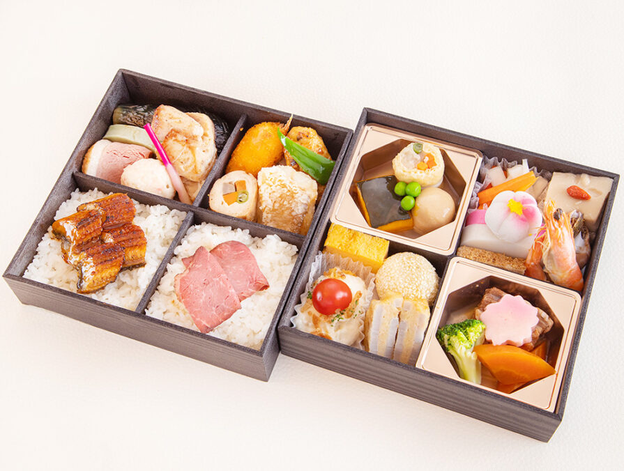 しっとりとしたローストビーフと、風味豊かな鰻ごはんの組み合わせが華やかさを演出します。